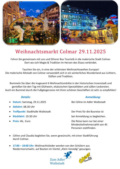 Samstag, 29. November Abfahrt 8.30 Uhr Stadthalle Waibstadt