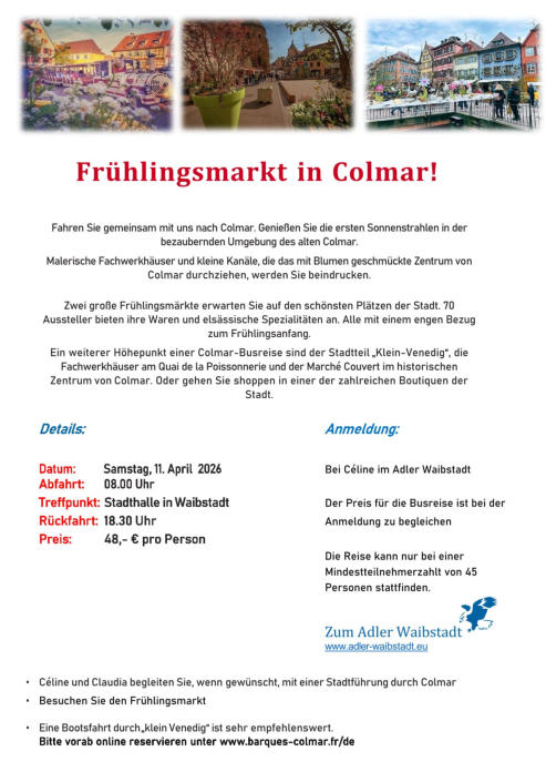 nach Colmar. Genießen Sie dort die ersten